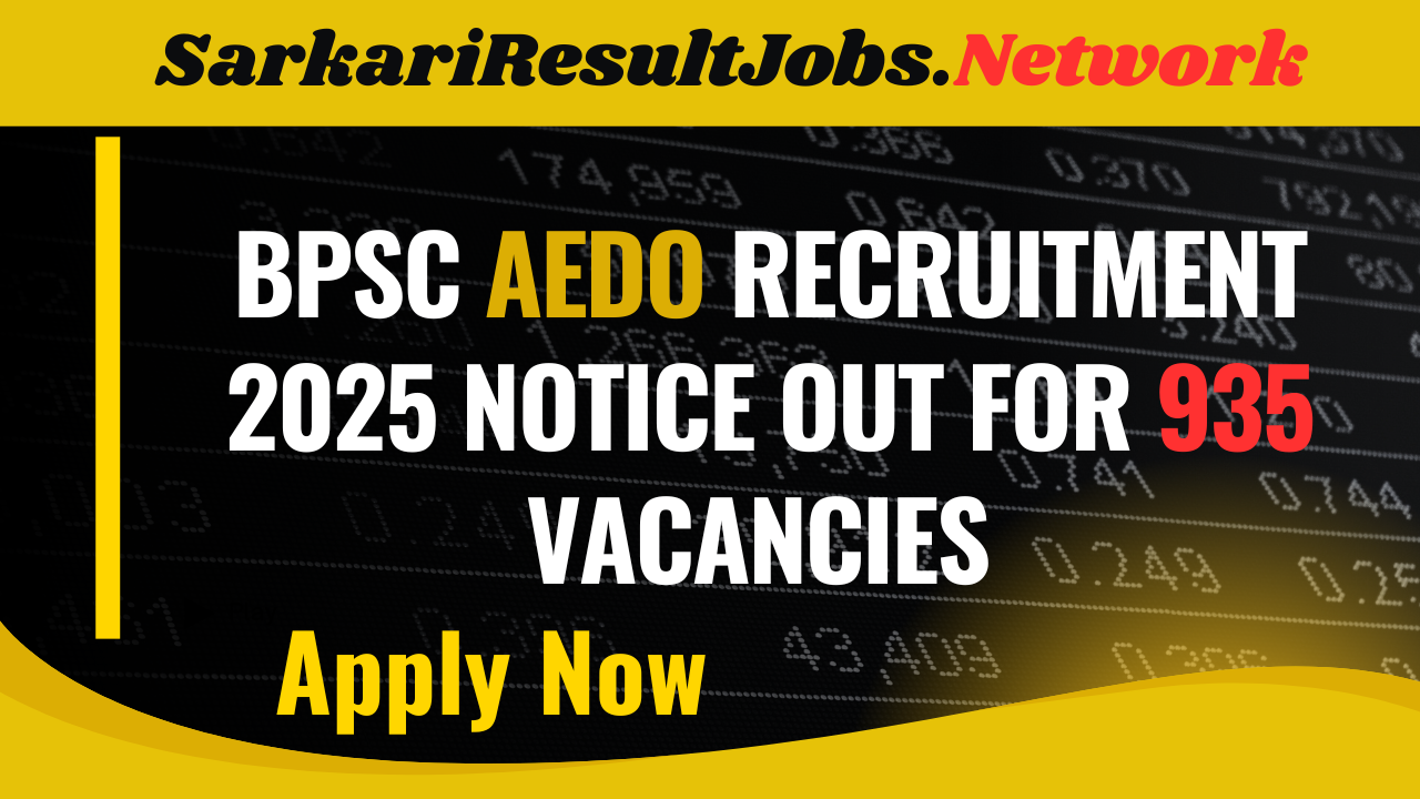 BPSC Assistant Education Development Officer AEDO Recruitment 2025 official notification has been issued by Bihar Public Service Commission (BPSC) on its official website www.bpsc.bihar.gov.in for interested candidates. According to the Education Department, Government of Bihar Vacancy Notice 2025, a total of 935 posts are available for recruitment. Below, you can find the complete details regarding eligibility criteria, age limitation, application fees, and the step-by-step application process. Applicants are strongly advised to go through the eligibility requirements thoroughly before submitting the form, as any incorrect or incomplete submission may lead to rejection of the application.