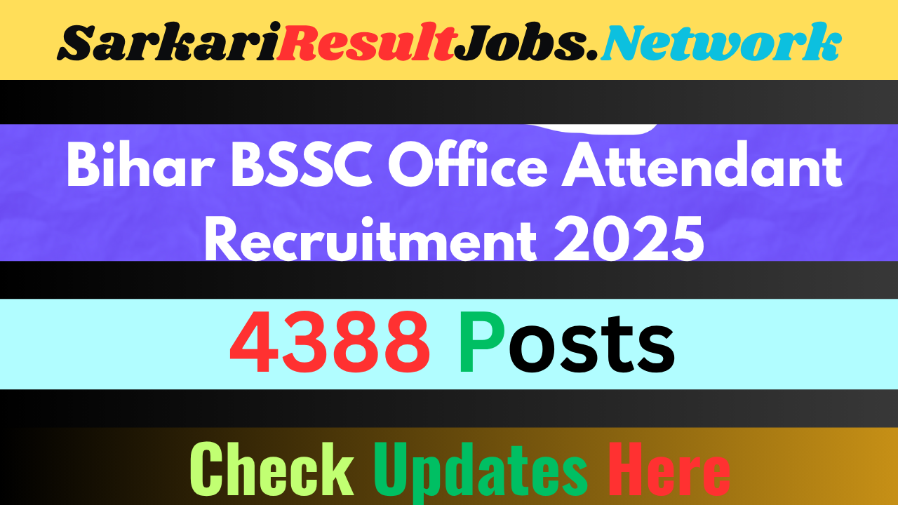 Bihar Staff Selection Commission (BSSC) has released the official notification for the Office Attendant Recruitment 2025. A total of 4388 vacancies are available across Bihar. The online application process started on 25 August 2025, and candidates can apply till 21 November 2025 (Extended). Interested candidates who have passed the 10th (High School) examination from a recognized board can apply online. All applicants are advised to read the official notification carefully before applying.