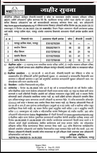 | Application Form Submission Address | Superintending Engineer, Nagpur Rural Division Mahavitaran, Nagpur |